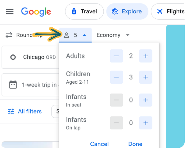 Always enter the correct number of travelers first so the prices reflect the real total for your family.